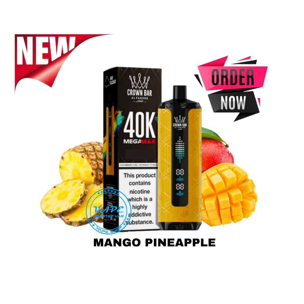The Al Fakher Crown Bar Mega Max 40000 Puffs Disposable Vape is the pinnacle of disposable vapes, boasting a huge capacity and extra features. With its awesome puff capacity, intelligent monitoring and dependable performance it’s an excellent option for vapers who want convenience that doesn’t compromise on quality. The rich tastes and easy to use features offers disposable pod fans the best possible starting and ending experience. And for Dubai residents, our amazing Vape Highster UAE offers you legitimate access to an incredible item that gives us a harmonious fusion of technology, flavor and convenience from the masters who are Al Fakher.